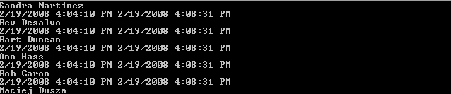 Console.WriteLine(contactWithAddresses .ContactModifiedDate + ” ” + contactWithAddresses .AddressModifiedDate);