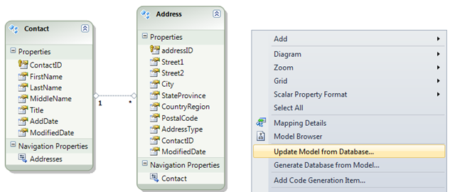 I have this following model. Check the “ModifiedDate” which is common in both the entities.